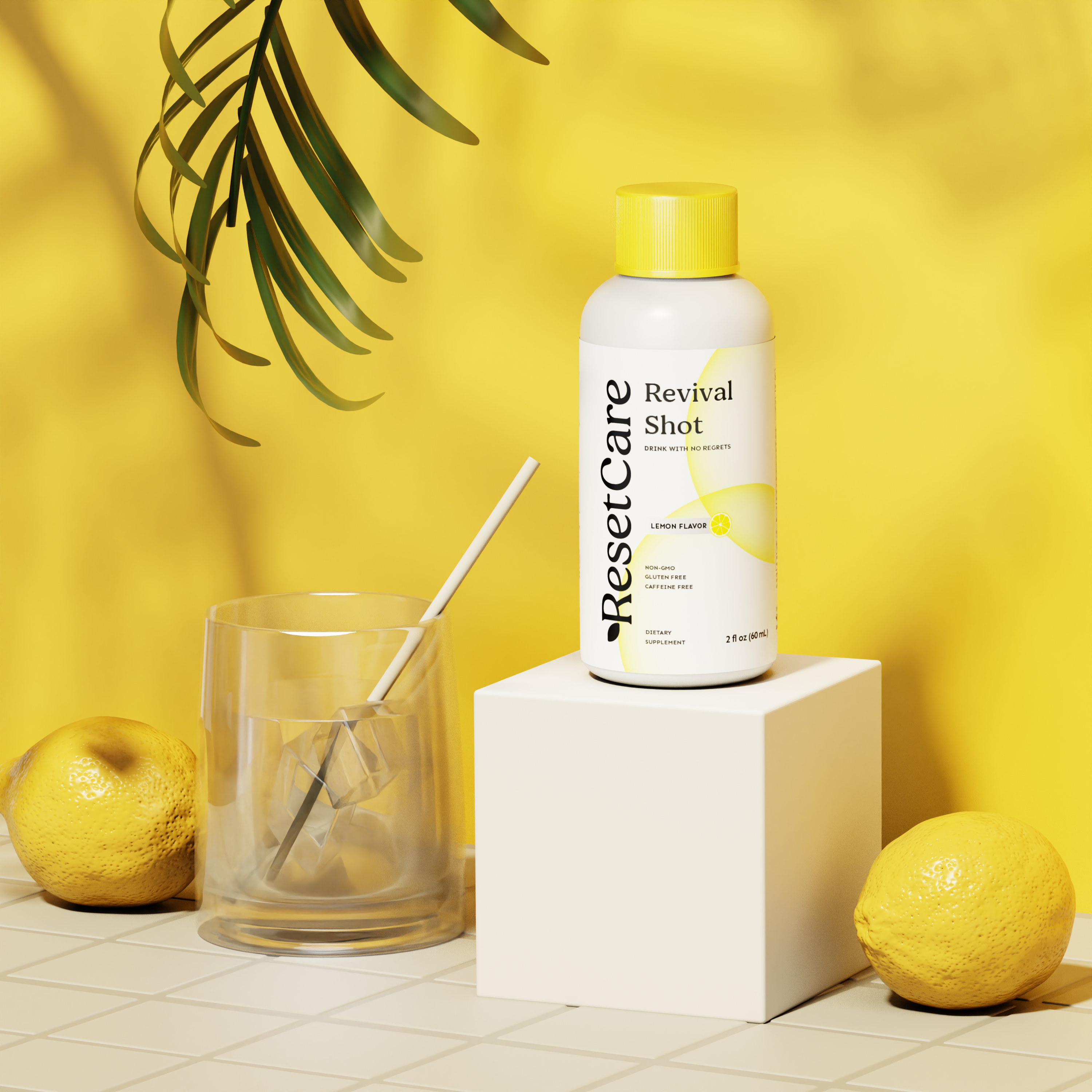 Luckily, the DHM in Revival Shot supports the breakdown of acetaldehyde in our liver by helping boost the activity of the enzyme acetaldehyde dehydrogenase, which converts the toxic acetaldehyde into harmless acetic acid more quickly. By reducing the amount of acetaldehyde in our system, DHM can lessen the severity of hangover symptoms.3 As a result, drinking Revival Shot can help reduce hangover symptoms.